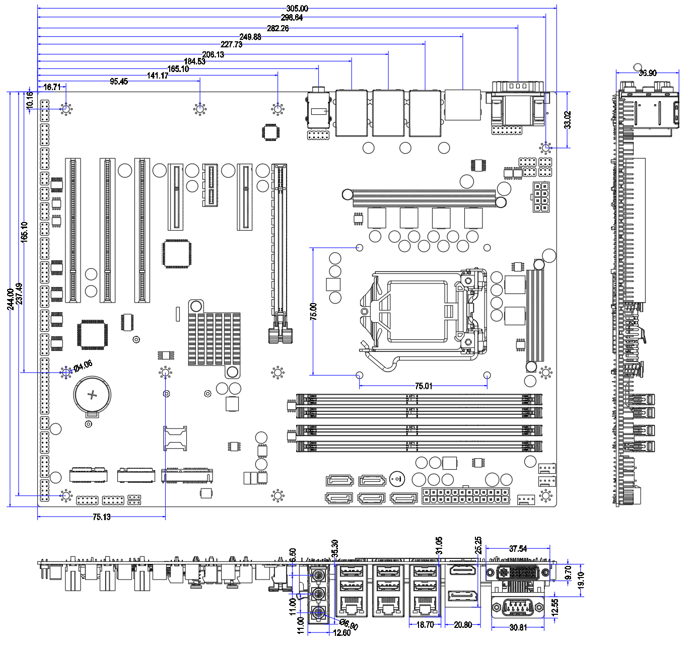3*LAN(LAN1/LAN2為RTL8111H,LAN3為Intel I219V),6*USB3.0,1*DB9 COM