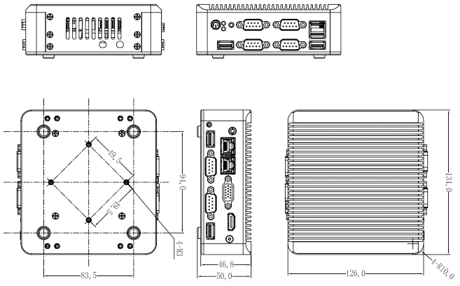 1*HDMI 2*USB3.0 4*USB2.0 2*LAN 6*COM(COM1,2可通過跳帽和Bioses設置選擇為RS232或RS485,RS485支持自動流向控製,COM3,COM4,COM5,COM6為RS232) 1*快速開機按鈕帶指示燈1*複位按鈕 1*DC 1*電源指示燈 1*硬盤指示燈 |