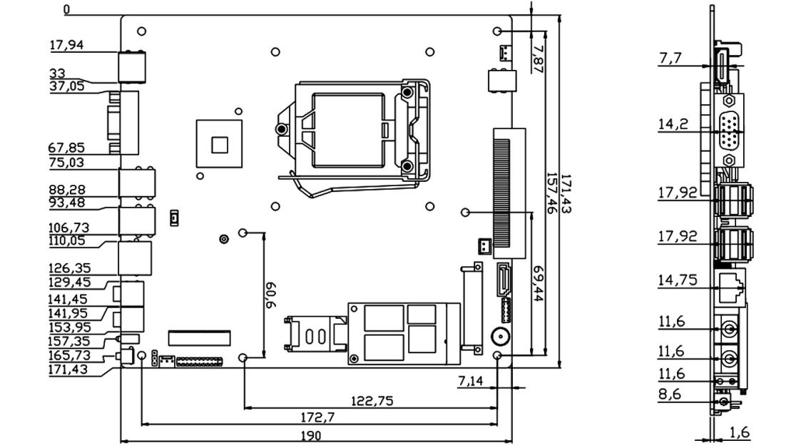 1 Mini-PCIe M-SATA Scoket with SANDISK protocol, maximum transfer rate 3gb/s