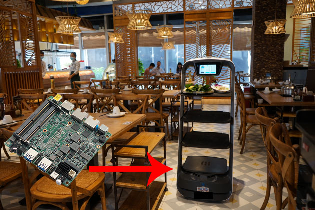 以其中WK310CA主板為例。WK310CA主板具有牢固耐用、抗震動能力強、可靠度高、性能強、可擴展性強等絕對優勢,可滿足智能送餐機器人複雜的運行環境。WK310CA主板基於Whiskey Lake-U處理器,性能強勁,能夠長時間穩定高效運行,支持MINI DP+HDMI2.0同步或異步顯示,6個USB接口,RS-232串口,2個Intel 千兆網卡,擴展接口豐富,產品兼容性強;具有工業級特性,在高溫、高強度的環境下能持續穩定運行;1個SATA接口,1個NGFF硬盤接口,存儲接口豐富,存儲能力強,能夠有效保障智能送餐機器人的一係列運行過程。